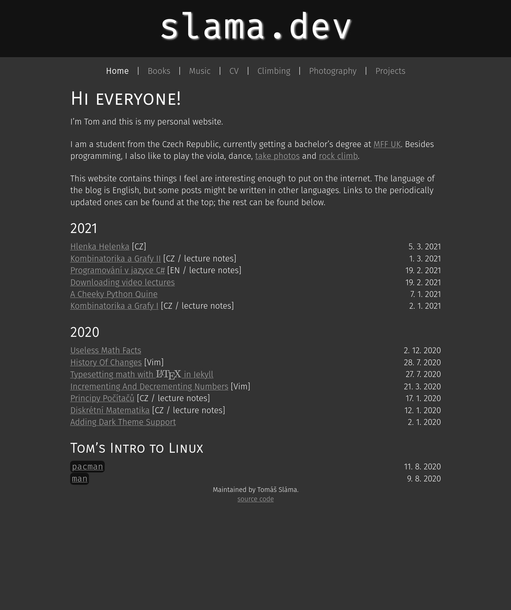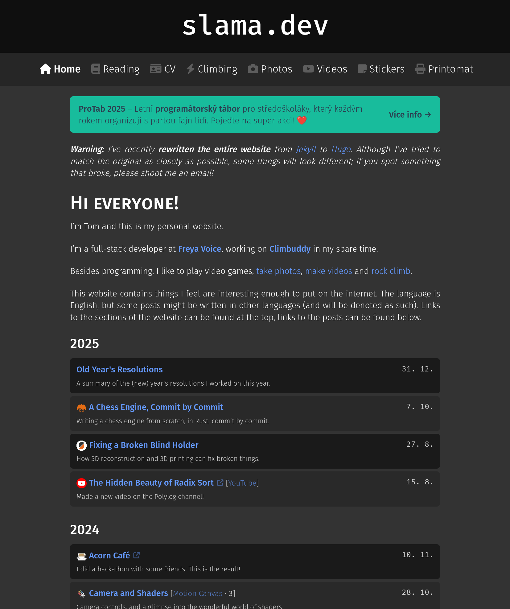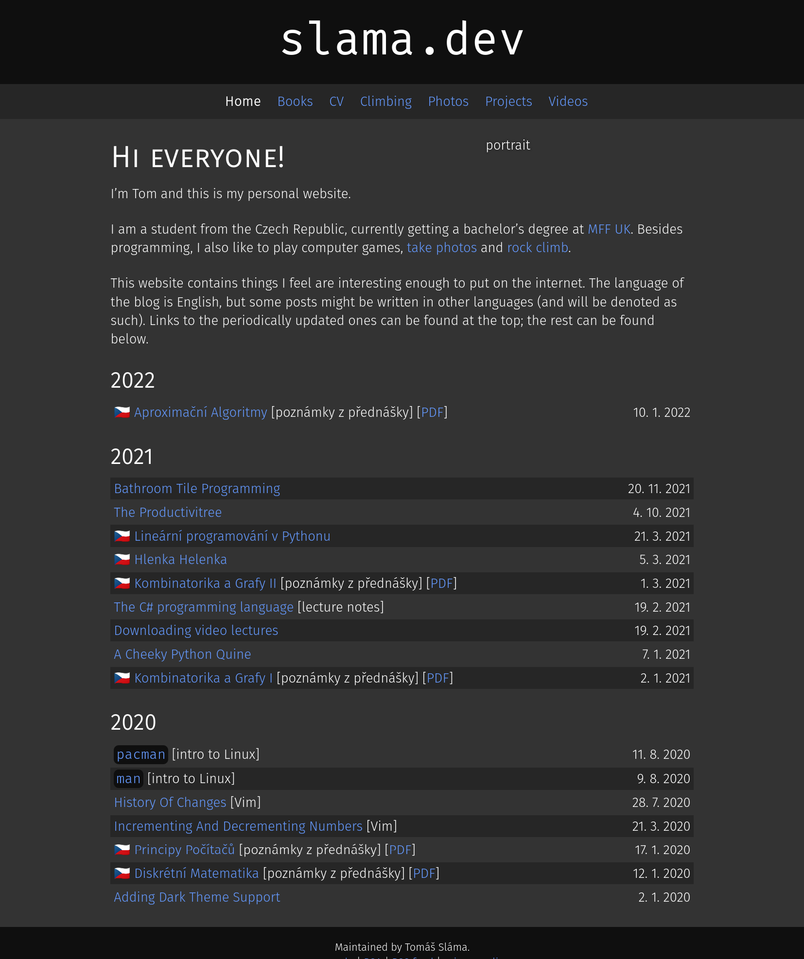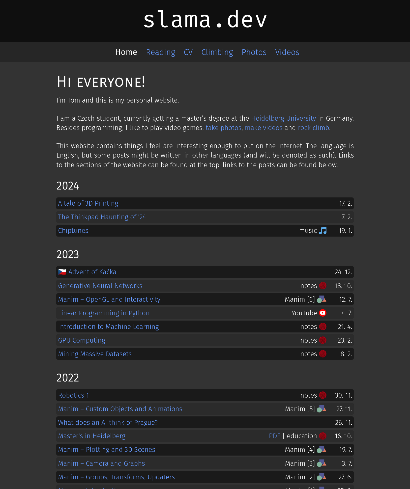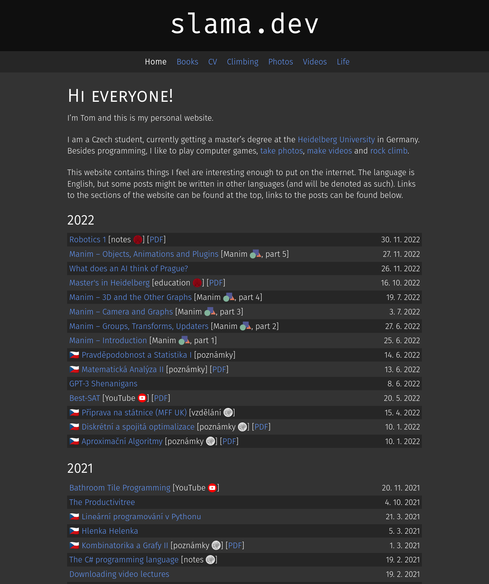 Over time, I’ve added lecture notes (Czech/English), a climbing diary, some pretty neat photos, and much more. While I’m really happy how the website grew, it was like building a ship as it’s sailing the ocean – add a sail here, patch the hull there, sprinkle some duct tape and hope it holds.